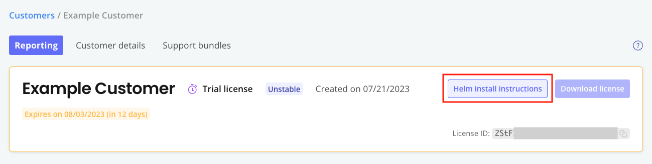 • The customer used to install must have the Existing Cluster (Helm CLI) install type enabled. For more information about enabling install types for customers in the Vendor Portal, see Manage Install Types for a License.